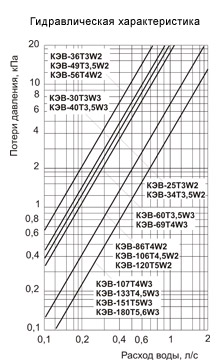 Величина падения давления рассчитана для температуры воды 95/70°С.