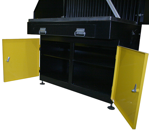 В нижней части стола находится тумба для инструмента, с закрываемыми на ключ дверцами.