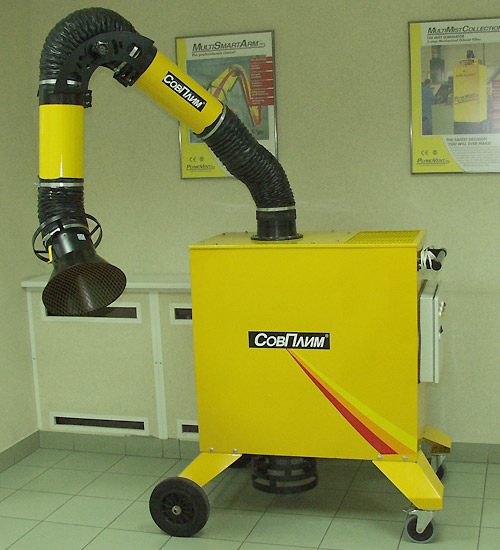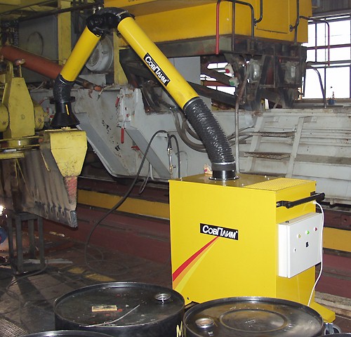 Электростатический фильтровентиляционный агрегат «EMK-1600/SP» с вытяжным устройством «KUA-3S/SP» обслуживает участок сварки. Агрегат очищает воздух от сварочного дыма и пыли и возвращает его обратно в помещение. |