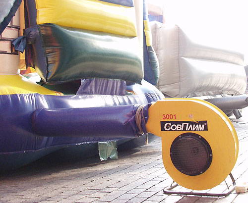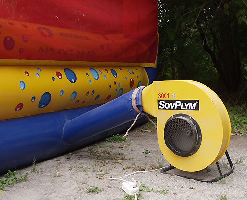 Батутный вентилятор среднего давления «FSB-3001/SP» в работе. Вид со стороны двигателя. |