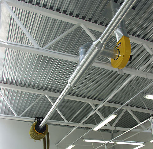 Вытяжной вентилятор «FUK-3000/SP» подсоединен к механическому фильтру воздуха «MF-3002» с вытяжным устройством «KUA-M-2H/SP», которыми оборудован участок наплавки. |