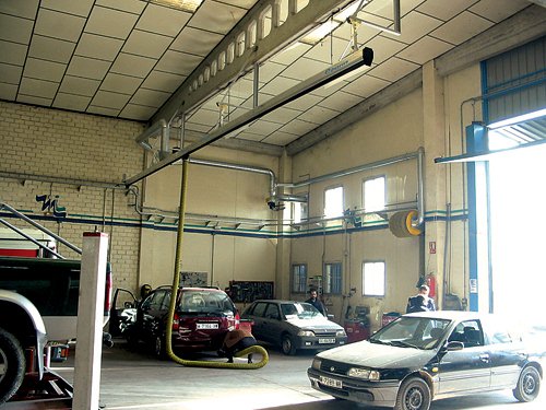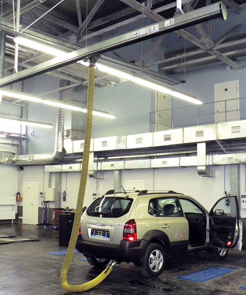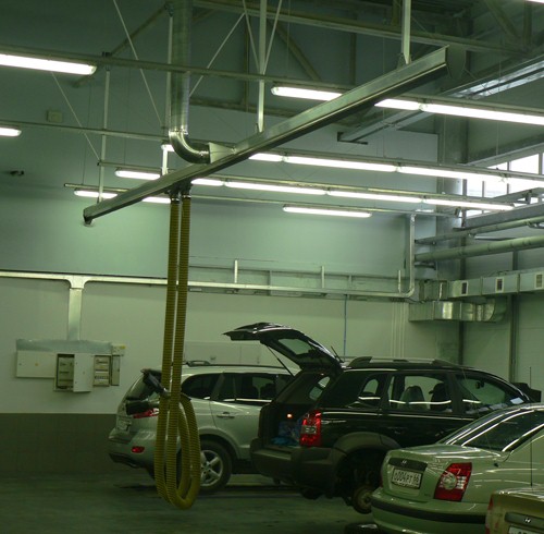 Автосервис оборудован пряморельсовой системой удаления выхлопных газов «MRP». |