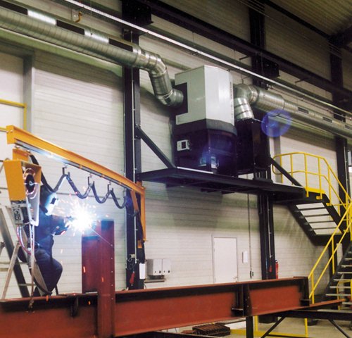 Механический фильтр «SCS» на сварочном производстве. Работу вентсистемы обеспечивает промышленный вентилятор «FAN-120» в шумопоглощающем исполнении. |