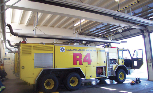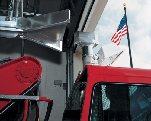 Гараж пожарной станции оборудован рельсовыми системами удаления выхлопных газов «VSR-12». |