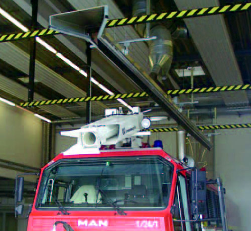 Гараж пожарной станции оборудован 5-ю рельсовыми системами удаления выхлопных газов «VSR-9». |